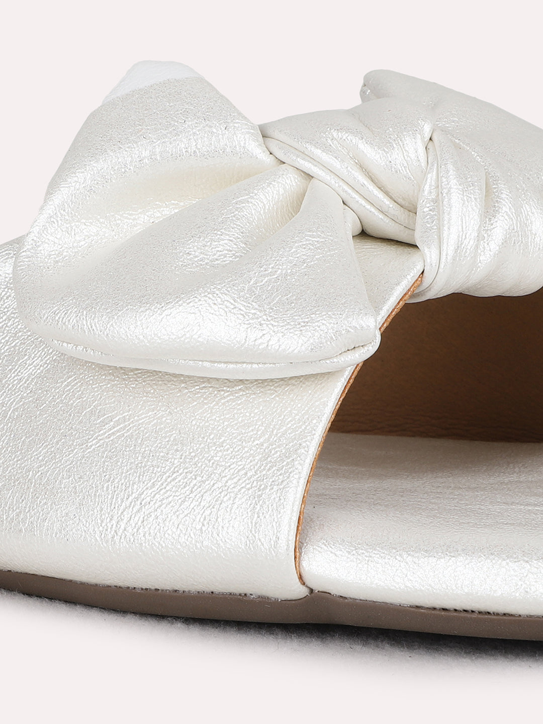 Womens Silver Casual Solid Open Toe Flat Slip-On Sandals