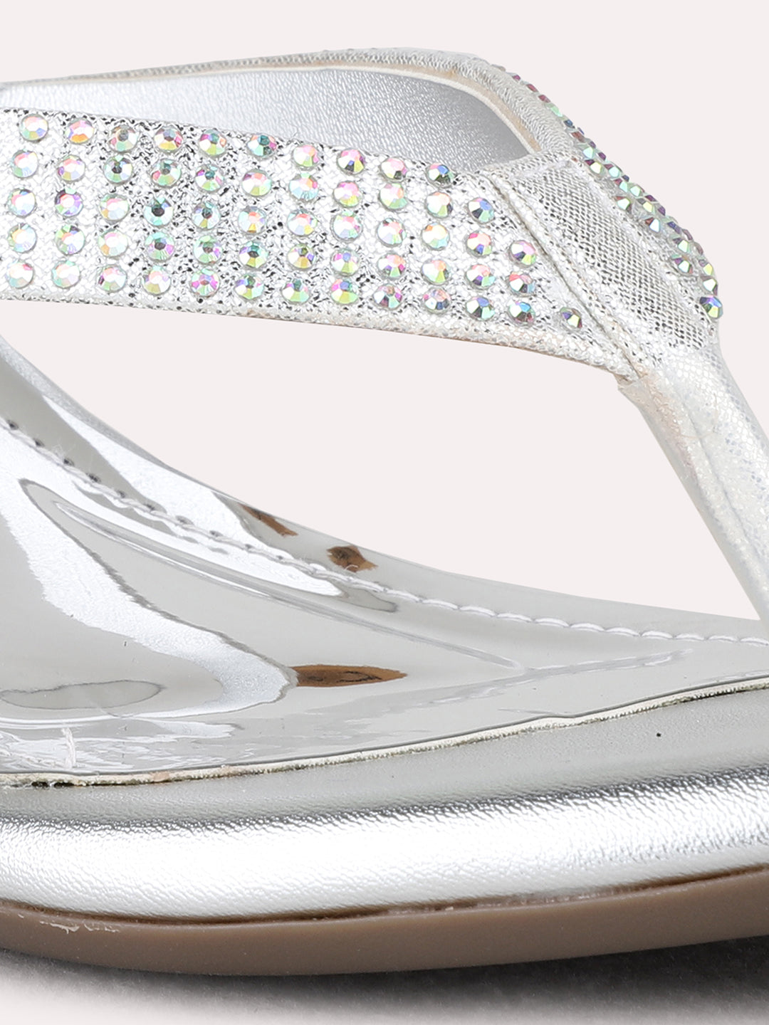 Product description:-Shine bright with these silver block heels featuring a solid pattern. Their sleek design and cushioned footbed make them perfect for party wear. |
