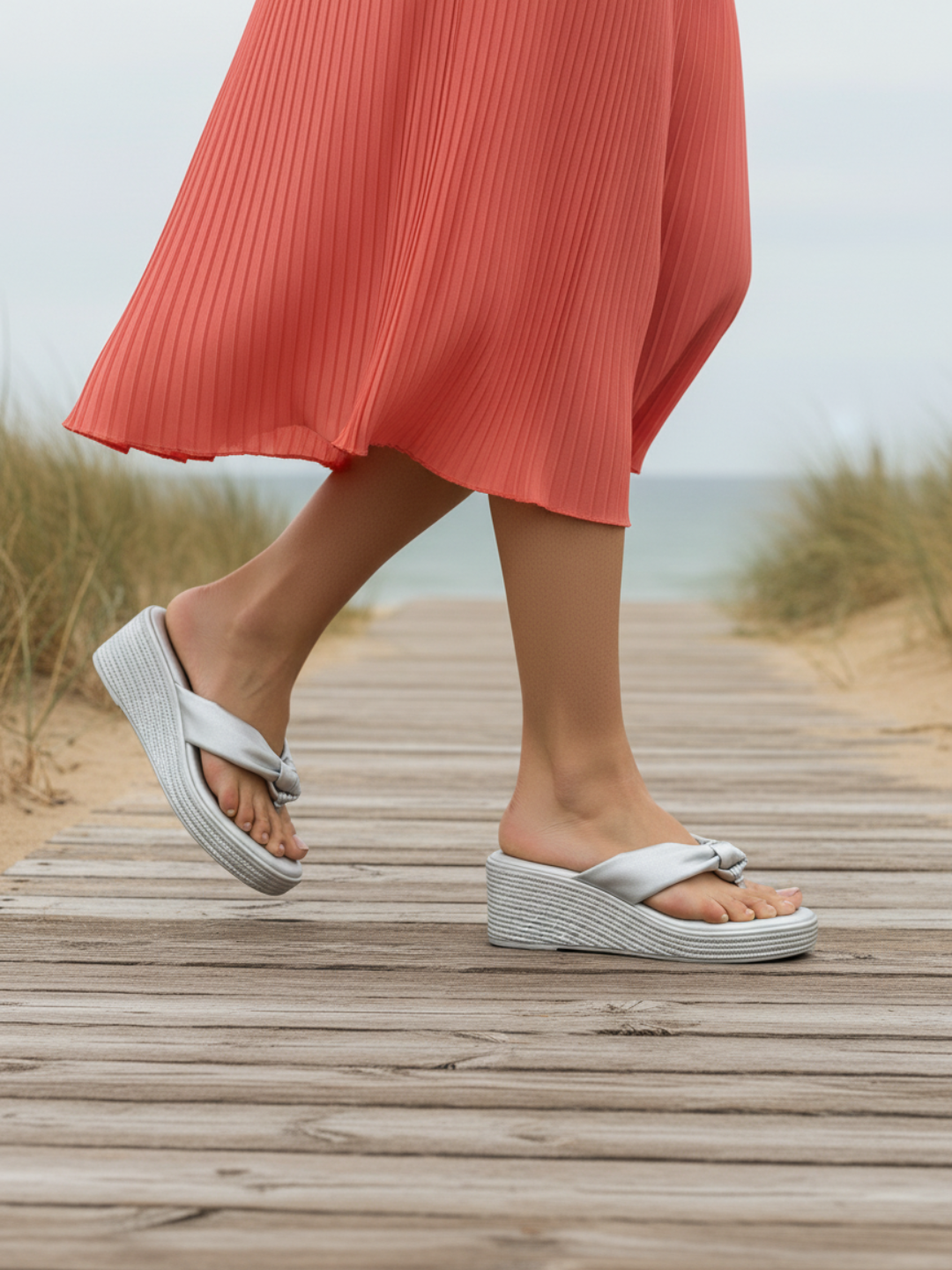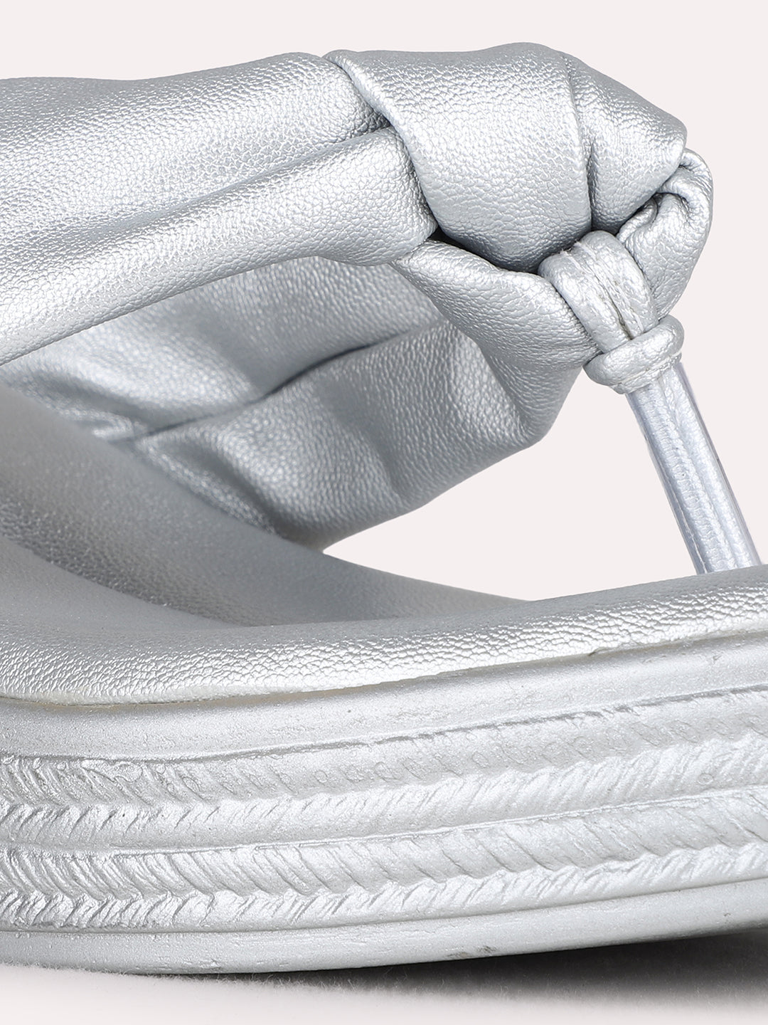 Product description:-Modern silver wedge sandals crafted for party wear. The solid finish and stable heel provide glamour, balance, and ease for long celebrations. |