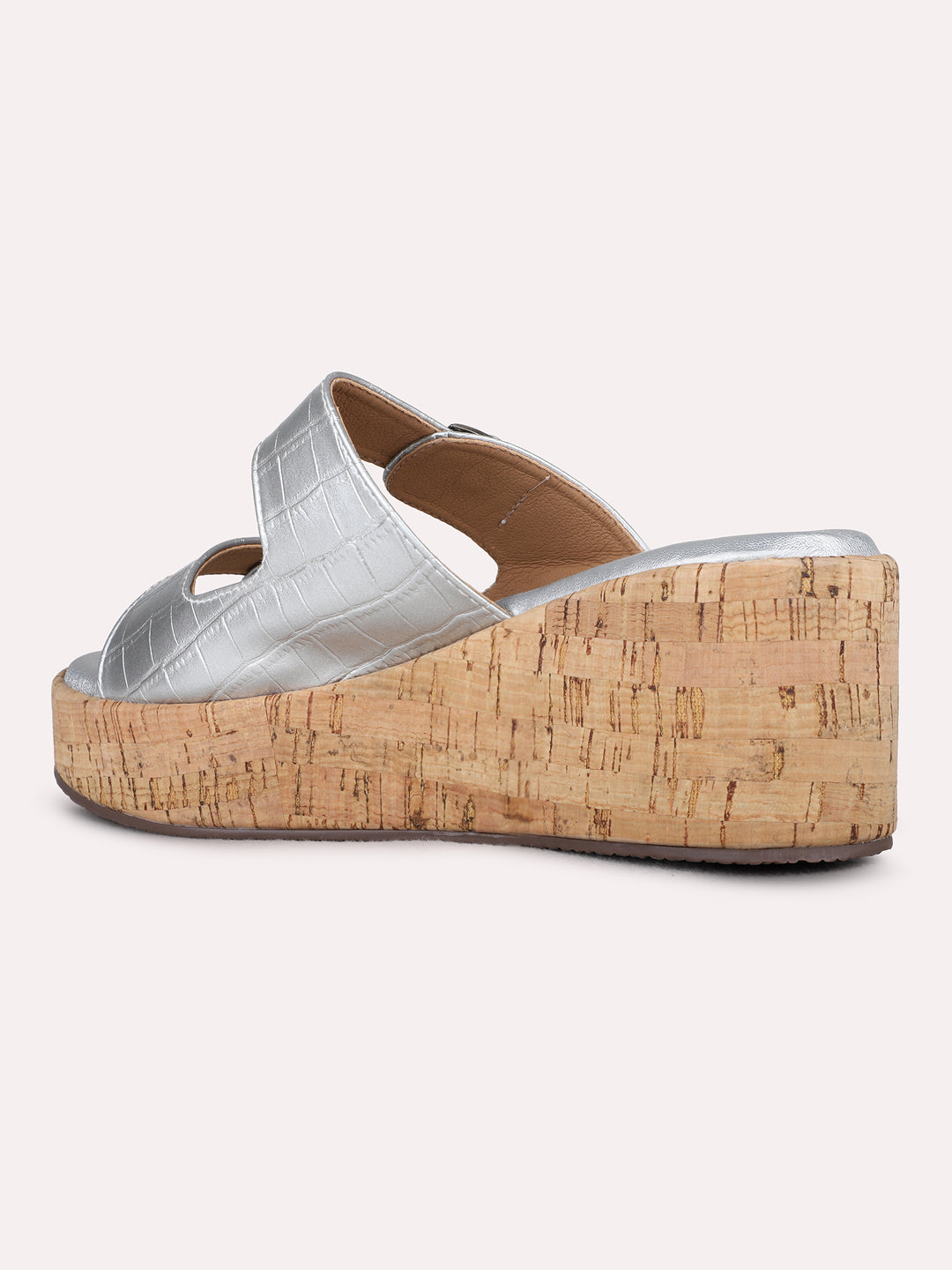Womens Silver Party Wear Solid Round Toe Wedge Heel Sandals