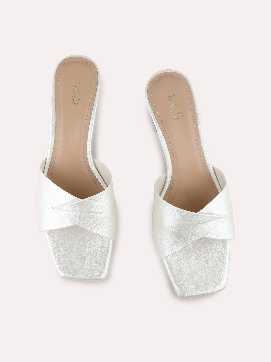 Womens Silver Party Wear Solid Square Toe Block Heel Sandals