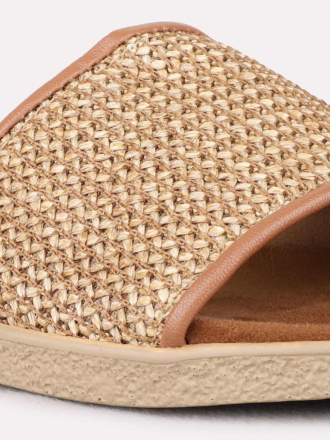 Womens Tan Casual Embellished Open Toe Flat Sandals