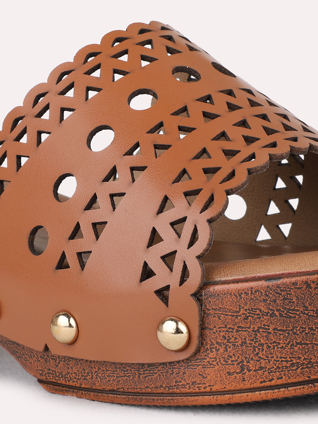 Womens Tan Ethnic Embellished Platform Heel Sandals