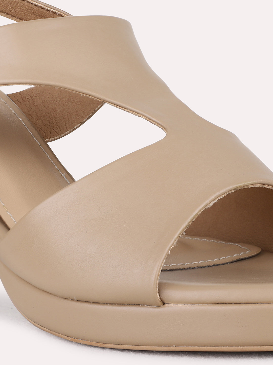 Womens Tan Party Wear Solid Round Toe Platform Heel Sandals