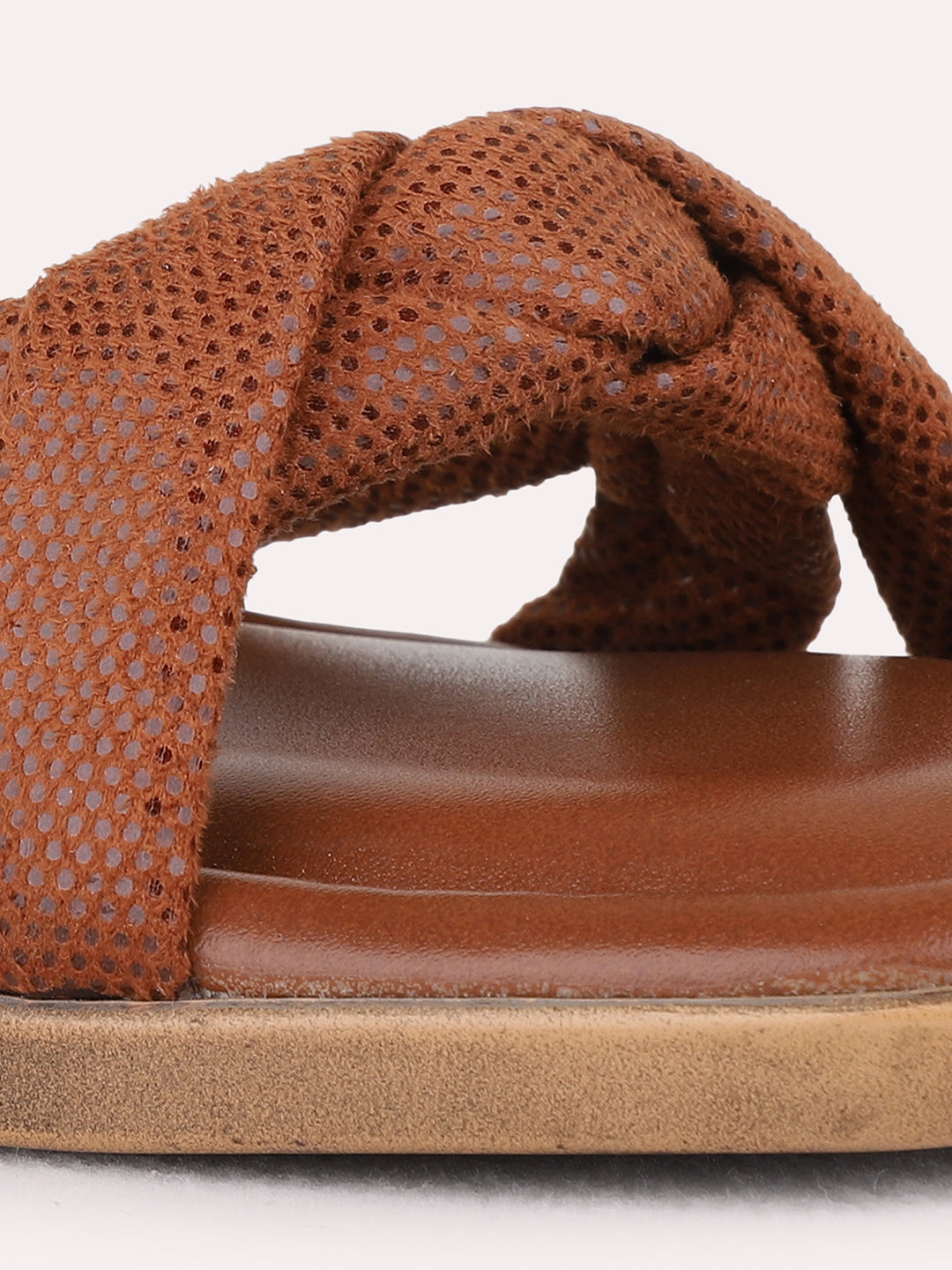Womens Tan Ethnic Solid Square Toe Block Heel Sandals