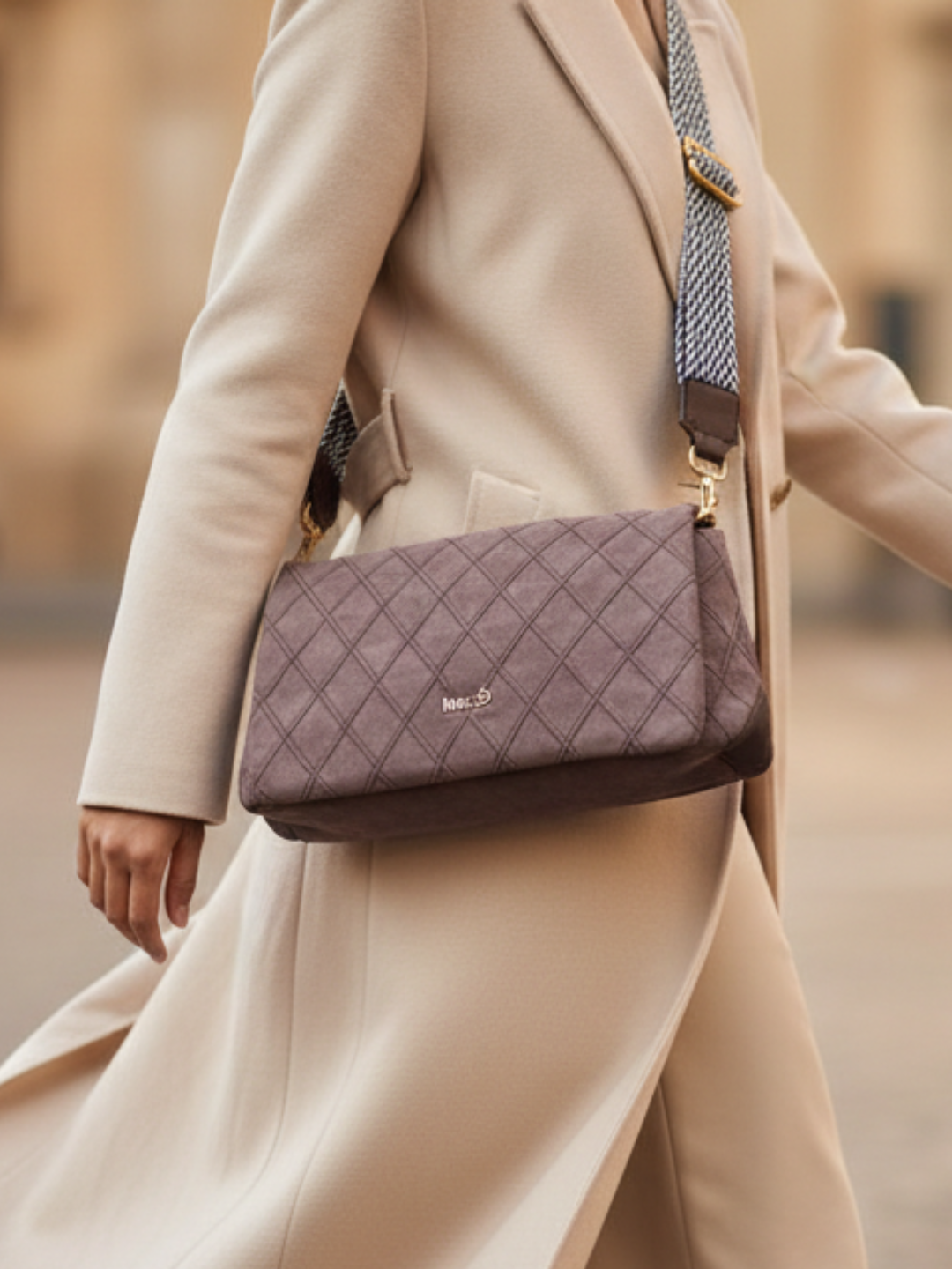 Product description:-Trendy taupe shoulder bag with magnetic button lock closure. Compact yet spacious design keeps your essentials organized during parties. |