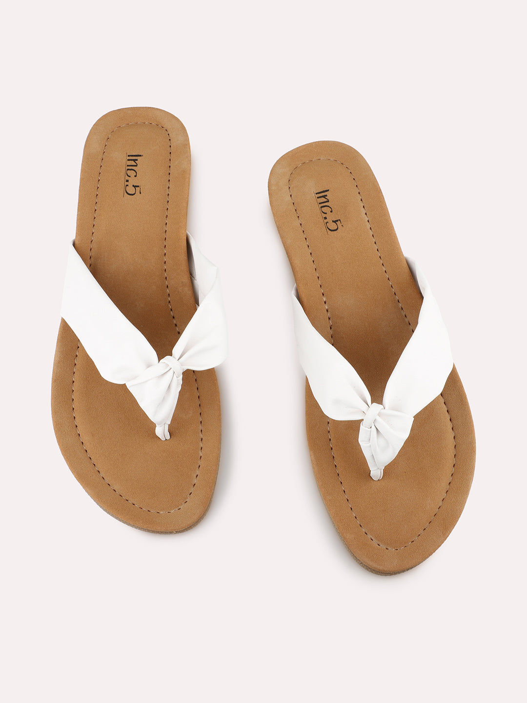 Product description:- Elegant and comfortable, these white ethnic T-strap flats are perfect for casual occasions. Their slip-on style makes them easy to wear for any outing. |