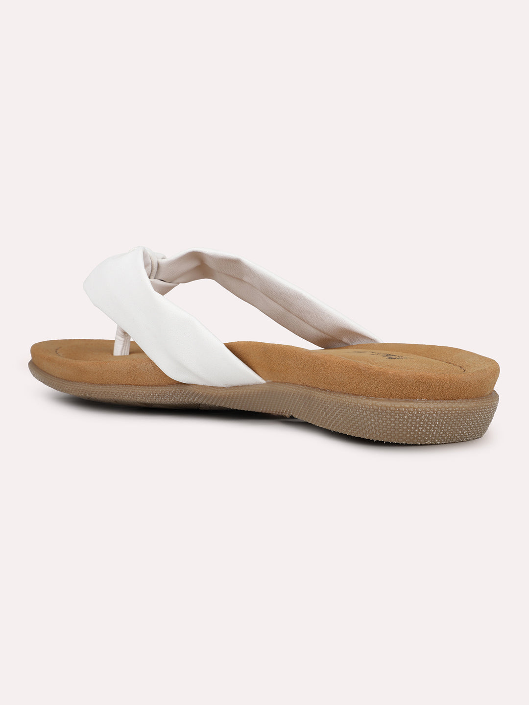 Womens White Ethnic Solid T-Strap Slip-On Flats