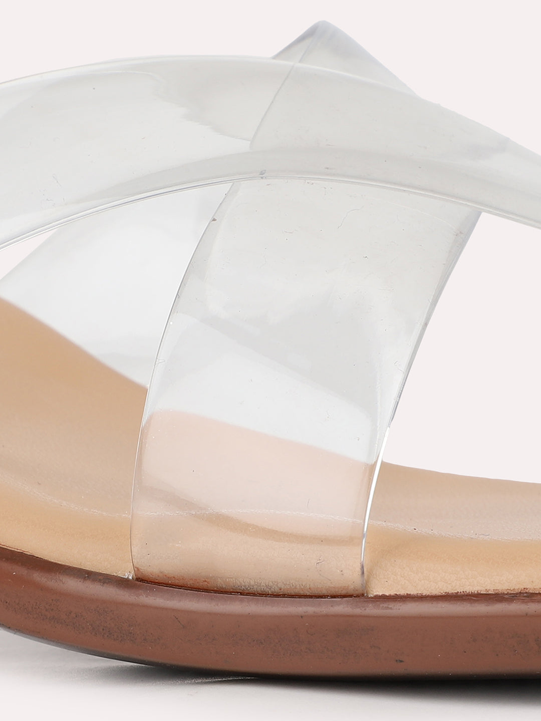 Womens White Party Wear Transparent Round Toe Block Heel Sandals