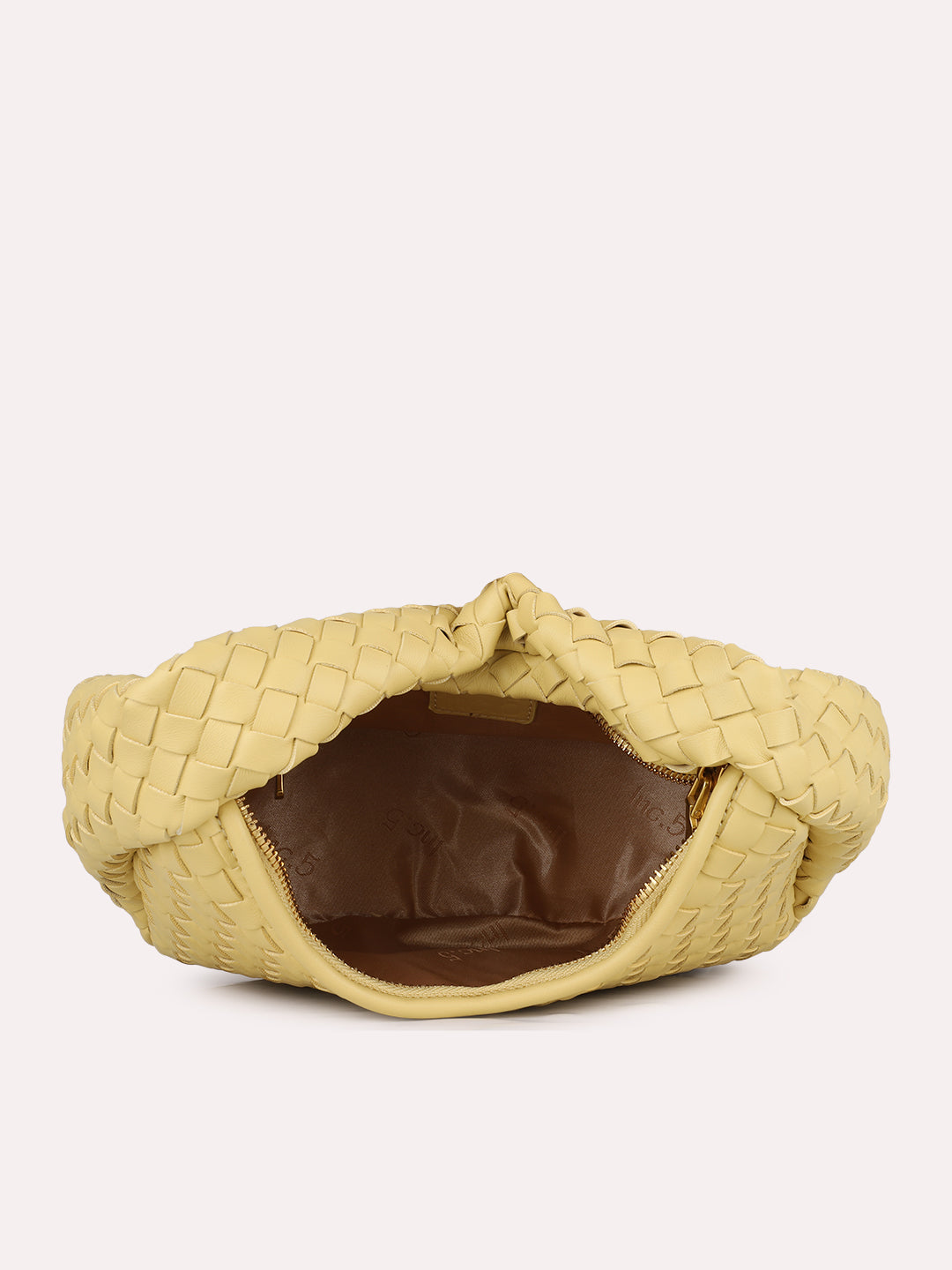 Product description:-Add a pop of color to your party look with this yellow handbag. With a stylish textured design and a secure zip lock, it’s perfect for carrying your essentials in style. |